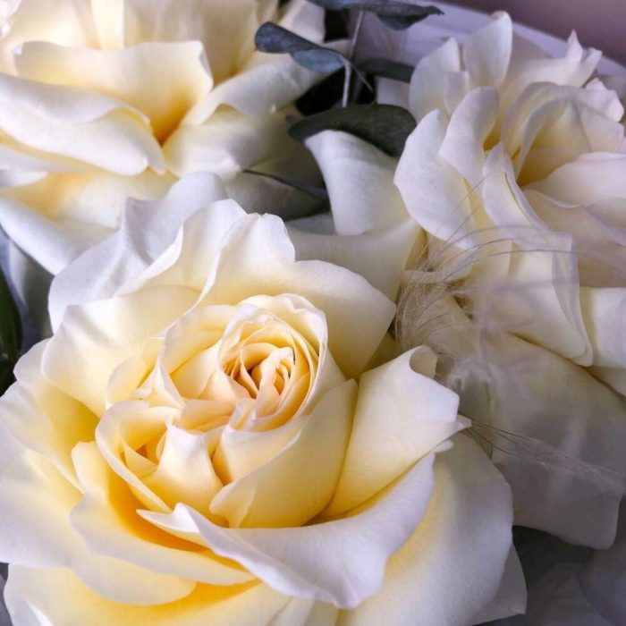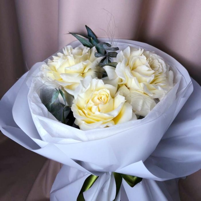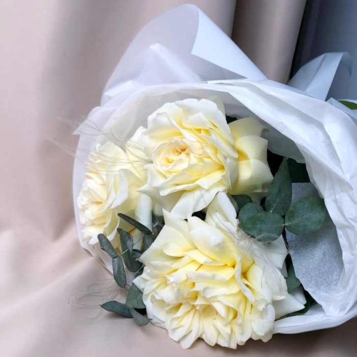 Белая роза крупная французская с эвкалиптом, букет S