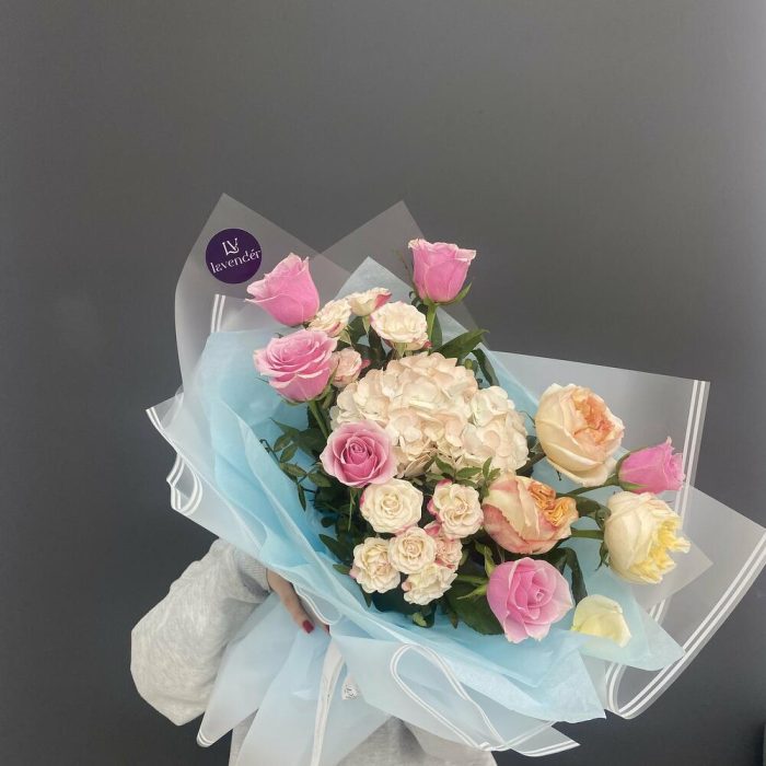 “Эвкалиптическая роскошь” гортензия и пионовидная кустовая роза