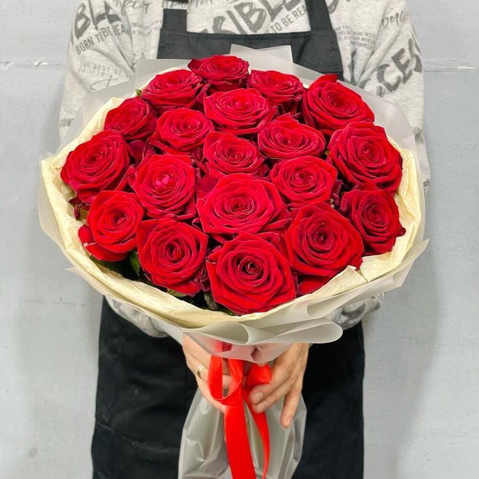 Лента атласная – 1 шт.Роза 70 см – 19 шт.Упаковка дизайнерская – 4 шт.