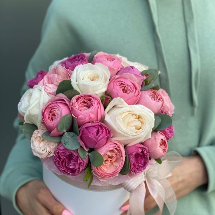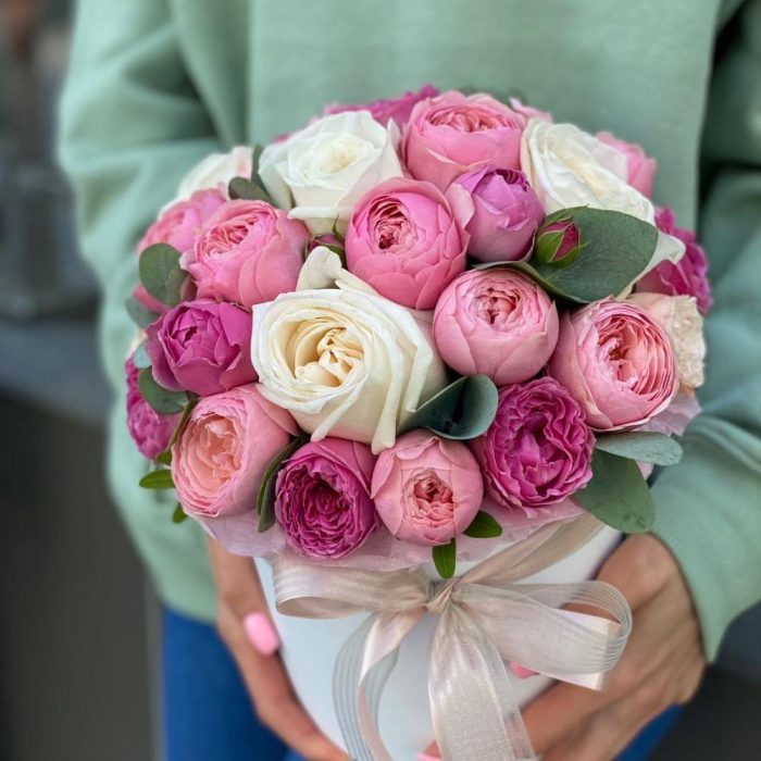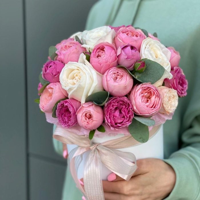 Коробка из одноголовых и кустовых пионовидных роз!