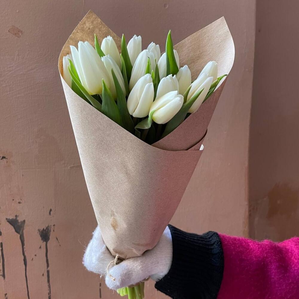 Крафтовая упаковка – 1 шт.Тюльпан белый – 15 шт.